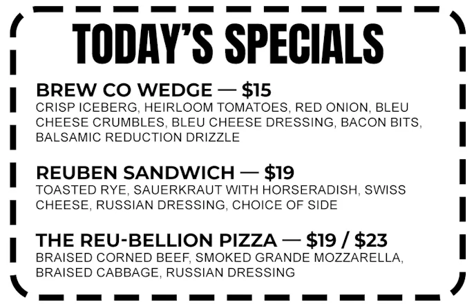 Hand made dough fermented over 24 hours. Grande cheeses from Wisconsin. House made sauce. Thoughtfully chosen ingredients. Only the best for our Brew Co. Family!